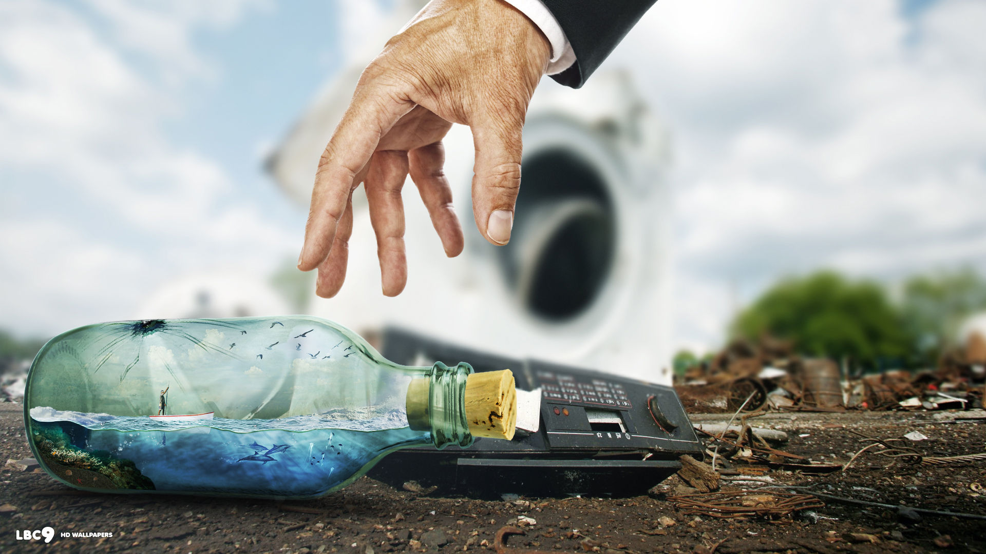 you are currently browsing wallpaper #1 out of 2 bottle wallpapers in the category photo manipulation hd wallpapers and desktop backgrounds. all wallpapers are in full hd resolution at 1920x1080 pixels, a widescreen aspect ratio of 16:9, and they fit perfectly on a 1080p monitor, hdtv or hd tablet.